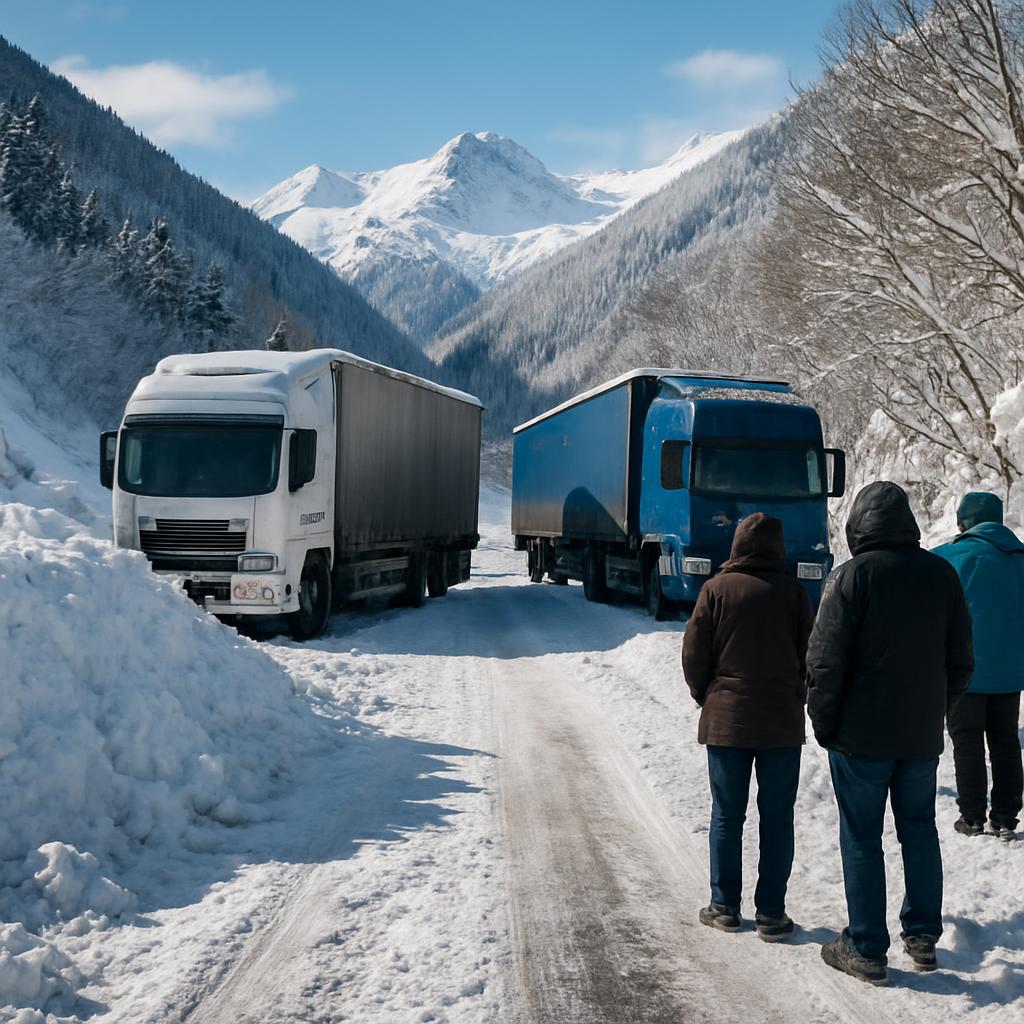 Neige dans les Hautes-Alpes : camions bloqués et routes inaccessibles.